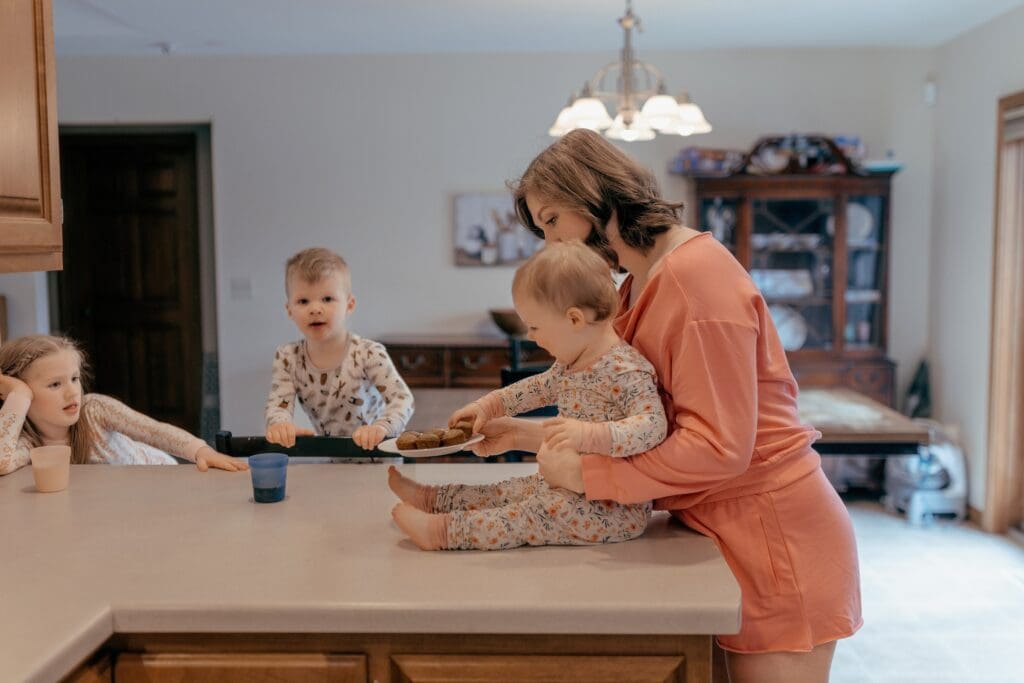 One of my favorite sessions happened in a quiet kitchen with a mom and her three little ones.